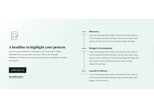Pick and choose from prestyled sections and modules included with Milly child theme elements to easily create the pages your website needs – or let yourself be effortlessly guided by expert marketing prompts, available right inside Milly.